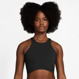 Cette brassière Nike One confortable a une encolure haute couvrante qui lui donne du style. Elle est confectionnée dans un tissu doux d'épaisseur moyenne qui s'étire à chaque mouvement et sèche rapidement. Le bandeau de poitrine côtelé croisé sur le devant cultive un look fashion. Et son maintien léger te laisse bouger librement.- Ouverture dans le dos laissant lair circuler.