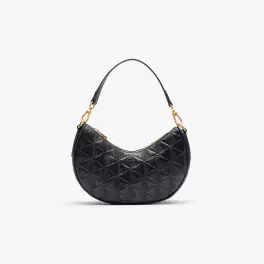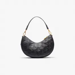 Élégant, ce sac Maheki en cuir se distingue par sa forme demi-lune et ses finitions en laiton doré.- Dimensions : l 25,5 x h 18 x p 8 cm